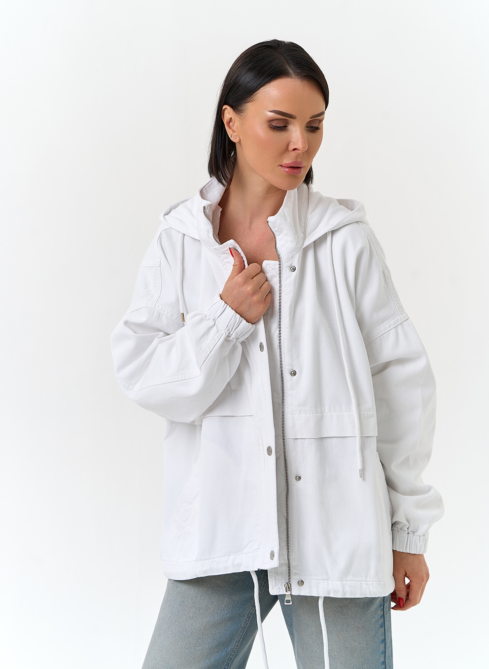 Женская джинсовая куртка с капюшоном
