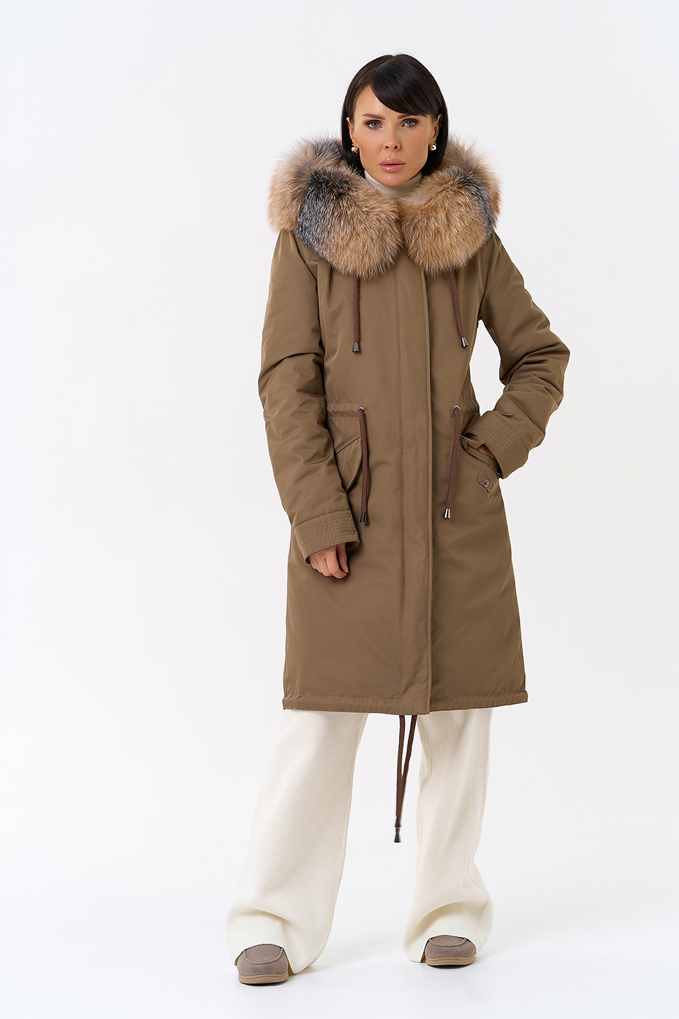 Крой воротника - капюшон, отделка лиса Otoban, овчина