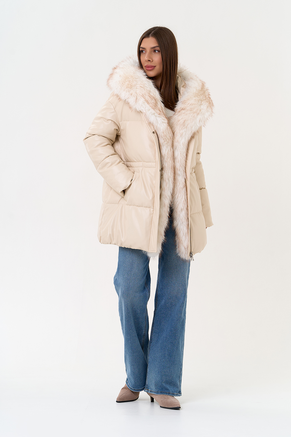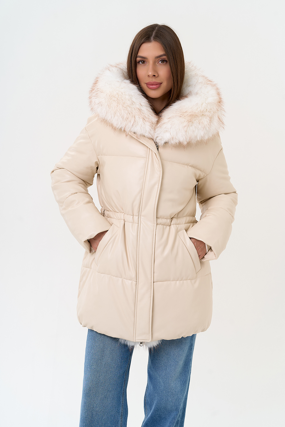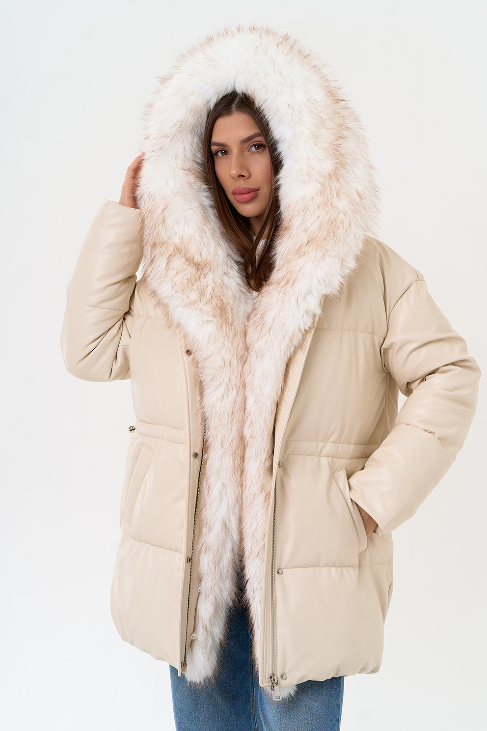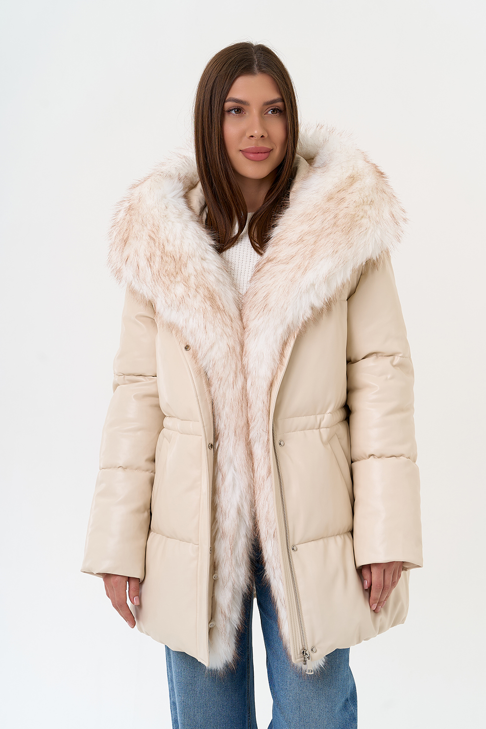 Отделка воротника - эко мех, цвет белый